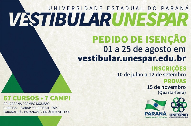 Pedidos de isenção para o vestibular da Unespar começam dia 1º